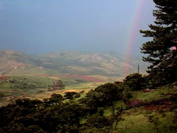 As the rain moves off into the distance, you may be lucky to see a rainbow.